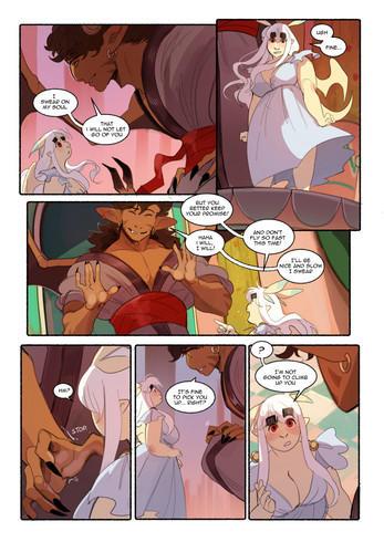 Our Fierce Differences is an erotic webcomic about falling in love with a huge monster, biting, eroticism and following your heart. It follows Kaede who finds herself in the presence of Prince Korandr, heir to the Kingdom of Illesh, ruler of the desert and ruler of her people. As politics crumble and war threatens, the pair form an unlikely friendship despite their differences as they work together to avert disaster.